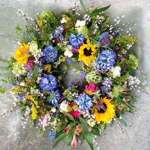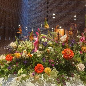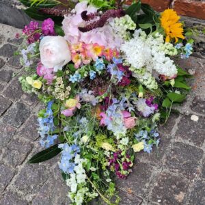 Jeg laver alt fra bårebuketter, kranse, hjerter og kistepynt til begravelsen - alt sammen med omsorg for detaljen og det personlige præg, du eller I ønsker. Måske har I blomster i haven, som I gerne vil have som en del af dekorationen? Jeg kommer gerne ud og hjælper med at sammensætte jeres egne blomster til den rigtige buket eller kistepynt.